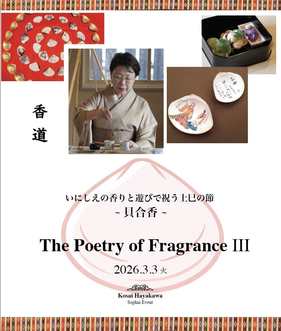 ○日 程 … 令和8年3月3日(火) ○時 間 … ①10:30~ 、 ②13:30~ 各回定員16名 ○場 所 … Sophia(大津市木下町18-40) ○会 費 … 4,000円(お茶菓子付き) ※※詳しい内容はパンフレットをご覧ください。