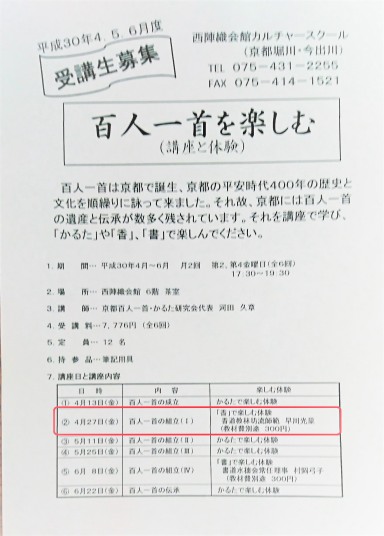河田久文章氏の講座内で行います。椅子席ですので、お気軽にどうぞ。 |